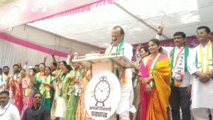 शिरूर नगर परिषद निवडणुकीतील राष्ट्रवादी काँग्रेसच्या उमेदवारांच्या प्रचारार्थ शुक्रवार दि.२८ रोजी येथील पाच कंदील चौकात झालेल्या जाहीर सभेत पवार बोलत होते.